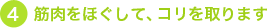 筋肉内にたまった疲労物質も早く代謝されてコリをほぐします。